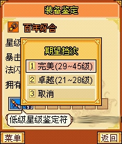 如果玩家不希望每次手动点击鉴定,可以选择自动鉴定。玩家需准备足够的金钱和鉴定符,选择期望的鉴定档次后,点击“自动鉴定”。自动鉴定有两个档次,分别是“卓越”和“完美”,开始后无法停止,直到金钱或鉴定符用完,或者达到预期的档次。